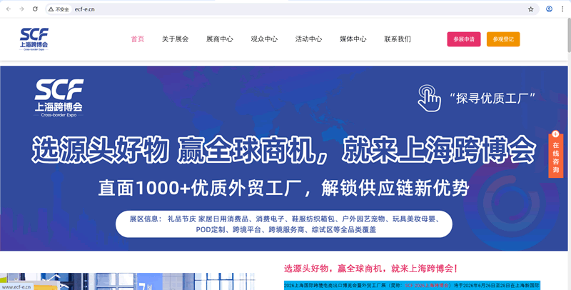 2026上海國際跨境電商出口博覽會暨外貿(mào)工廠展(簡稱:SCF 2026上海跨博會)將于2026年6月26日至28日在上海新國際博覽中心隆重舉辦。本屆展會以“選源頭好物,贏全球商機,就來上海跨博會!”為主題,專注跨境電商高效選品這一核心需求,致力于構建以源頭工廠和爆款產(chǎn)品為中心的專業(yè)型展會,成為全球跨境賣家開拓品牌出海之路的首選平臺和爆品孵化基地。
