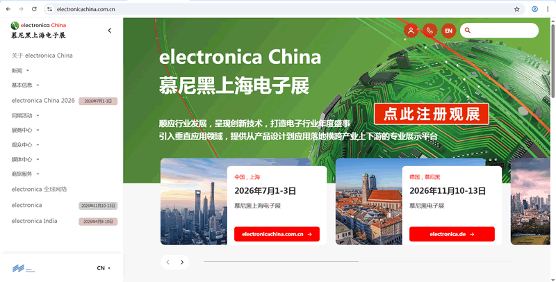 慕尼黑上海電子展(electronica China)2026/07/01-03新國際博覽中心開幕,上海奧韻Since2007持續聚焦電子元器件展展臺設計、連接器展展臺搭建、工業電子展展會設計、汽車電子展展會搭建、集成電路展展位搭建、電子博覽會展臺搭建、電子展展臺設計、半導體展展臺搭建、尼黑電子展展臺搭建。