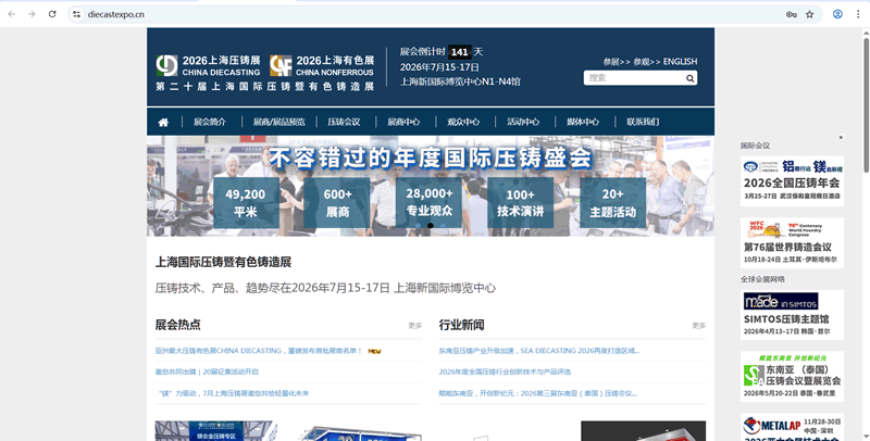 汽車與航空航天產(chǎn)業(yè)的持續(xù)升級,正為全球壓鑄與有色鑄造行業(yè)注入強勁動力。輕合金精密成形技術(shù)的突破,進一步加速了應(yīng)用端的輕量化進程。其中,鋁合金應(yīng)用持續(xù)深化與擴容,鎂合金鋒芒初顯、加速滲透,共同構(gòu)成雙“引擎”驅(qū)動格局。與此同時,綠色低碳、智能化轉(zhuǎn)型與核心工藝創(chuàng)新,持續(xù)重塑產(chǎn)業(yè)生態(tài),已成為提升企業(yè)競爭力的關(guān)鍵要素。第二十屆上海國際壓鑄暨有色鑄造展(CHINA DIECASTING & CHINA NONFERROUS 2026)將于2026年7月15-17日在上海新國際博覽中心(N1-N4館)隆重舉辦。匯聚來自全球的壓鑄及有色鑄造全產(chǎn)業(yè)鏈企業(yè)與專業(yè)人士,集中展示新材料、新工藝、新應(yīng)用,深度聚焦智能制造、綠色低碳、模具創(chuàng)新等熱點方向。