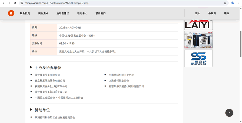 信息轉載地址:https://www.chinaplasonline.com/CPS/idx/simp https://www.chinaplasonline.com/CPS/information/AboutChinaplas/simp